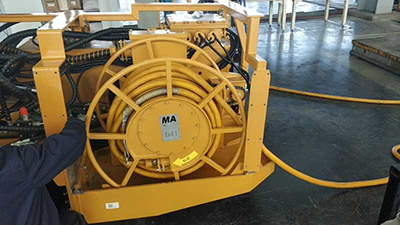 是針對隧道掘進機設(shè)計開發(fā)的一種電纜滾筒,其卷線方式液壓驅(qū)動收放線。液壓驅(qū)動卷線原理是利用機車本身的液壓馬達系統(tǒng),預(yù)留專用驅(qū)動接口連接到卷筒本身,力矩可調(diào),達到力矩可以泄壓保護電纜不拉傷???strong>防爆電纜卷筒制方式同樣也可以實現(xiàn)手動控制,與主機實現(xiàn)聯(lián)動。