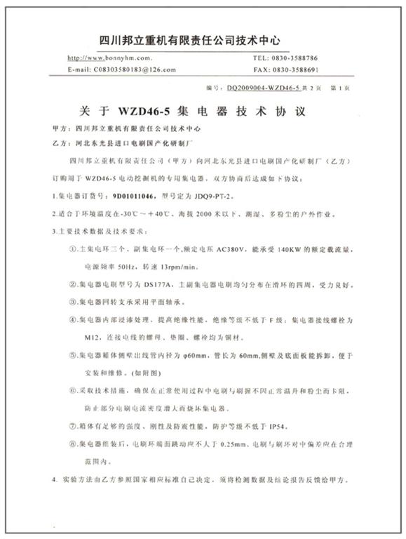 我公司與四川邦立重機(jī)關(guān)于WZD46-5集電器技術(shù)協(xié)議