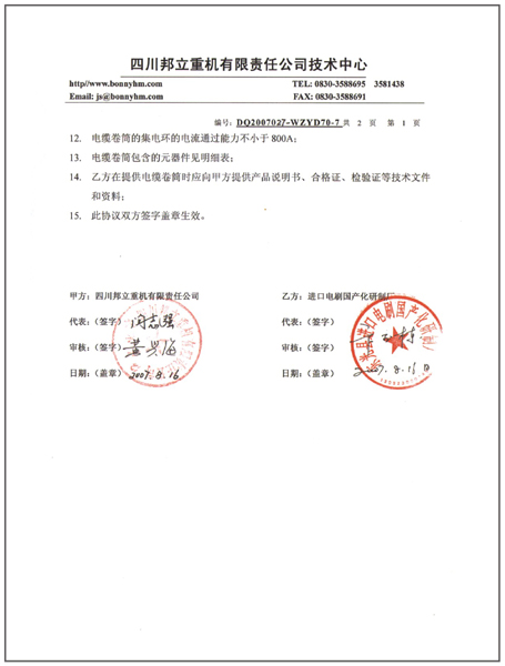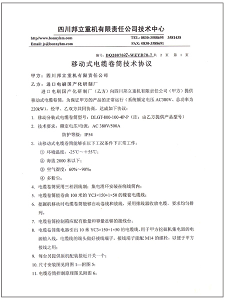 我公司與四川邦立重機(jī)關(guān)于移動(dòng)式電纜卷技術(shù)協(xié)議